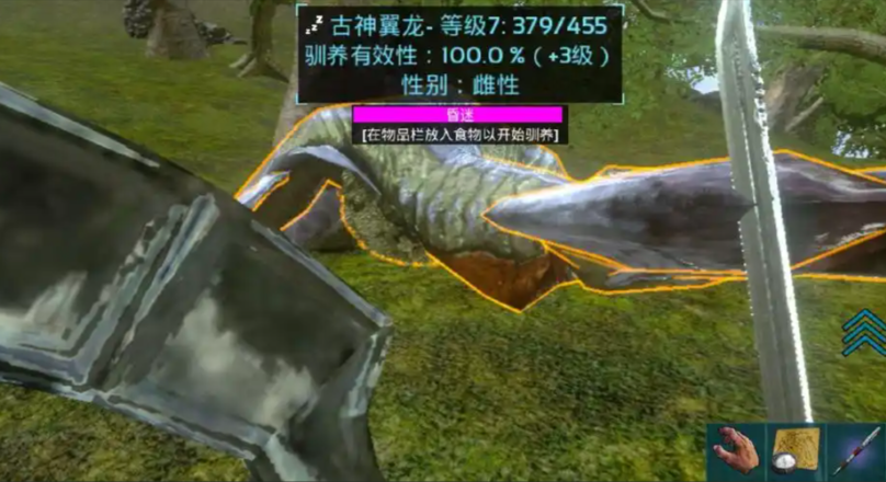 捆住古神翼龙后,赶紧掏出麻醉箭或者麻醉镖把它射晕。这家伙的眩晕值掉得挺快,所以最好用高威力的麻醉武器,比如长管步枪配麻醉镖,几下就能放倒它。射的时候尽量瞄准头部,效率更高。等它晕倒后,就可以喂它最喜欢的食物了,异特龙蛋饲料是首选,没有的话用优质生肉、优质熟肉或者优质鱼肉也行,不过驯服速度会慢一些。记得在它昏迷时守在旁边,别让其他野生恐龙来捣乱。