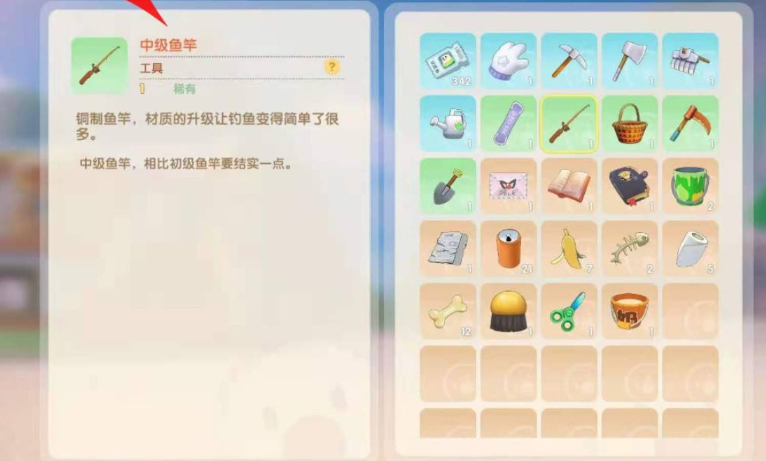 升级完成后,咱们就能在农具栏里自由切换鱼竿了。打开家园界面,找到农具那一栏,点开鱼竿选项,会看到一个切换的小图标。一道杠代表初级鱼竿,两道杠就是中级鱼竿啦,轻轻一点就能换过来。中级鱼竿的耐久度消耗更慢,钓鱼成功率也更高,钓到稀有鱼的概率也会提升哦。