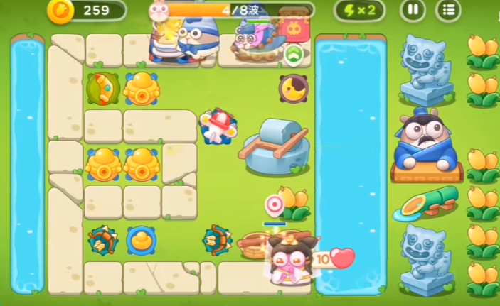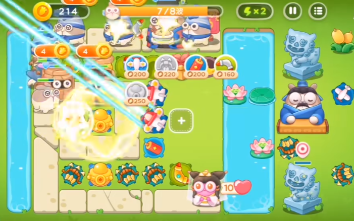 最后阶段要把右下方道具清干净,拆掉下方两个多重箭换成右上一个多重箭,荷叶上也要放个多重箭。暂停游戏把右边多余的多重箭拆掉,在中下位置放三个多重箭,这样火力就完全够用了。最终布局要保证每条路线都有足够火力覆盖,特别是多重箭要升到满级,这样才能轻松守住最后一波。这关的关键在于前期快速打钱,中期及时调整炮塔位置,后期集中火力。多重箭是这关的主力炮塔,记得优先升级。道具清理顺序也很重要,先打钱袋子再清其他障碍物。