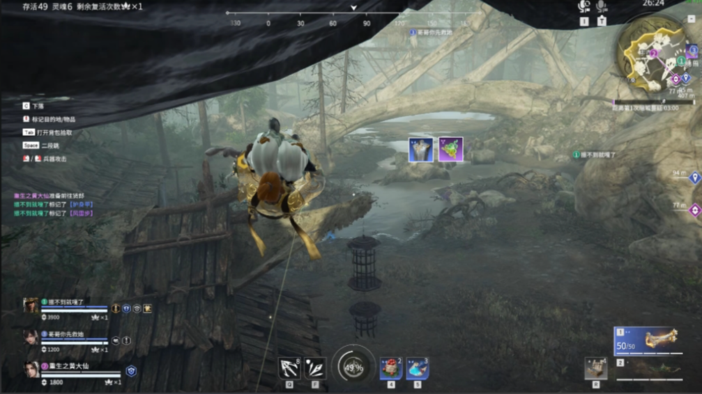 钩锁对抗和空中操作能创造逃生机会。看到敌人甩钩锁过来时,立刻侧向闪避或原地小跳躲避。如果被钩中,别急着反击,先观察距离——离得远就蓄力预判对方落地位置,离得近就向后闪避接升龙斩抢主动权。高空坠落时别傻站着挨打,半空中按空格键能再次攀附墙壁或树木,让对手的追击落空。