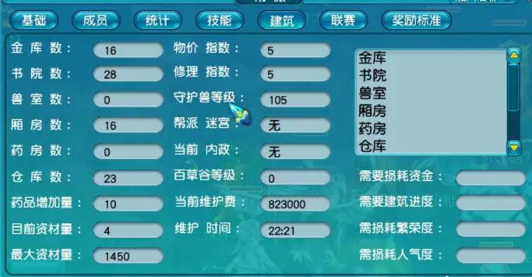 刚建立的帮派就像一张白纸,咱们得先把书院和厢房这两个核心建筑搞起来。书院是帮派科技的根基,每升一级都能加快技能研究速度,建议优先点满。厢房则决定了帮派能收多少人,每升一级多10个名额,初期人气不足的话可以先升3级,等后期活跃玩家多了再补到8级。这两个建筑虽然费用高,但长远看是帮派壮大的基础。