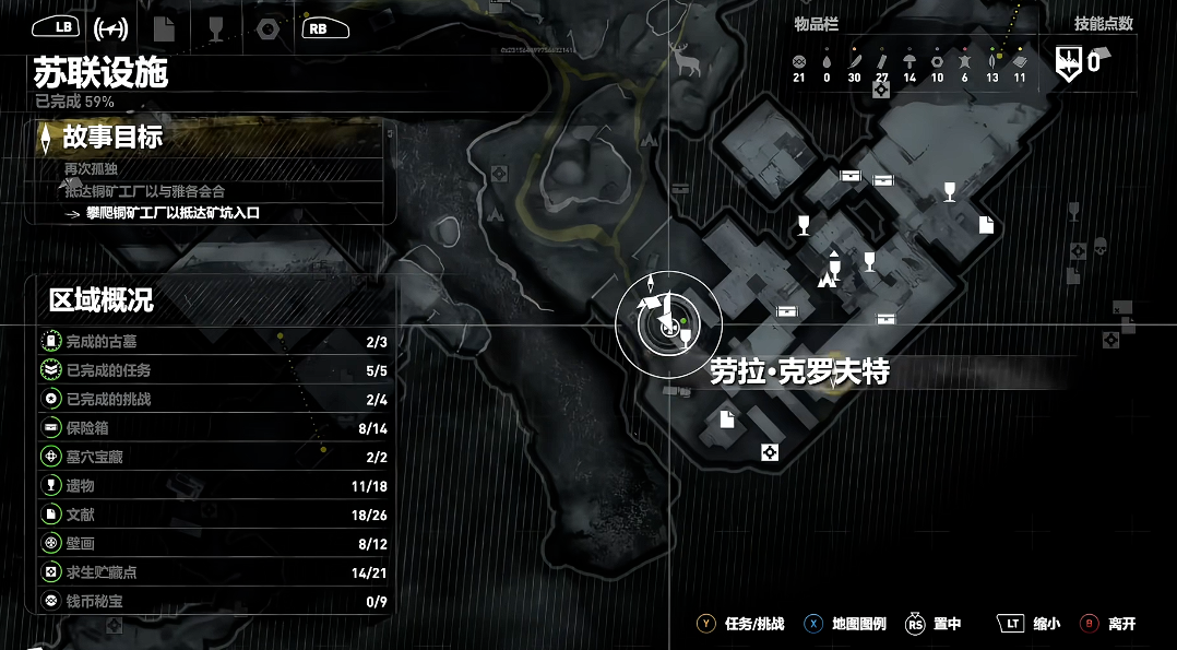 苏联设施区域包含大量收集品和挑战任务,需结合地图探索与解谜技巧。关键收集品包括遗物、文献、壁画、求生储藏点等,部分物品需完成支线任务或解锁特定工具才能获取。建议优先完成通讯失灵支线任务获取开锁工具,并升级绳索箭矢和燃烧瓶以应对障碍。