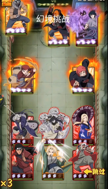 面对高爆发队伍时,优先释放纲手的治疗技能保障生存;对抗持久战阵容则可利用大蛇丸的控制打断敌方节奏。三忍阵容的弱点在于缺乏高速先手,因此需通过通灵兽或辅助忍者弥补速度短板。后期可通过羁绊阵容(如搭配猿飞日斩、旗木卡卡西)进一步强化三忍属性,但前期资源有限时应专注于核心三忍的培养。