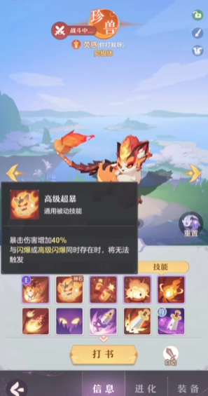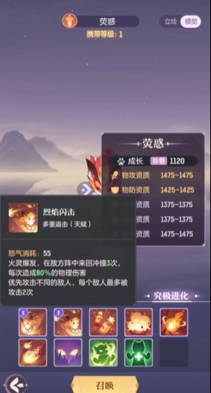 资质培养方面,攻击资质与速度资质是优先提升项,可通过珍兽资质丹突破上限。5技能荧惑的被动技能栏位价值较高,不建议用神石覆盖原有特性。实战中要注意回合开始时火灵感应的伤害递增效果,合理规划集火目标。随着等级提升,可考虑将荧惑转型为耐攻流派,通过吸血和坚韧技能延长战场存活时间。