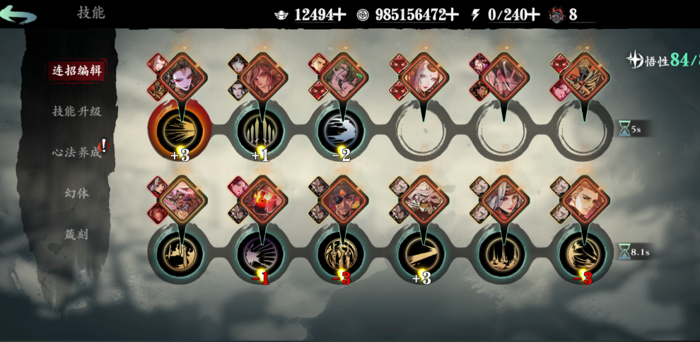 心法系统是战力突破的另一关键,高品质心法需通过吞噬低阶心法升级,并消耗特定材料突破火数限制。四火心法作为顶级养成目标,需收集鬼火、炼狱、业火等印记合成,突破后解锁更强绝技与属性加成。养成策略上,建议批量培养低阶心法作为经验素材,优先为主力心法突破火数,同时注意搭配羁绊效果以激活额外增益。心法铸魂属性需合理分配,右列铸魂效果即使挂在空槽也可生效,但需点满右侧属性才能触发。