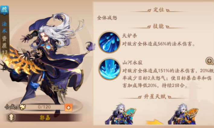 曹操的技能机制决定了他适合担任前排或中排角色。前排站位能充分利用其高生存能力,为团队吸收伤害的同时触发反击效果;若放置于中排,则可依靠队友保护,专注于输出与控制。需曹操的低星阶段伤害表现一般,需优先提升星级以解锁完整战力。搭配郭嘉、司马懿等武将时,能通过羁绊效果获得额外属性加成,进一步提升团队整体强度。