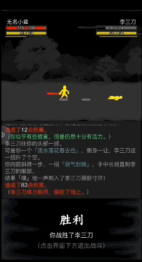 西厢房挑战李安平可掉落长剑,击败魏冲则获得单刀,这两把武器虽基础但适合前期过渡。小店区域的地痞流氓战斗胜利后可获取银两,林间大道的野狗击败后掉落狗肉,后者是后续任务的必要道具。华亭村口的莽夫战斗胜利后可进入恶人村,居民大院门房内与神秘NPC切磋获胜后能获得毒方,这些隐藏内容需仔细探索。