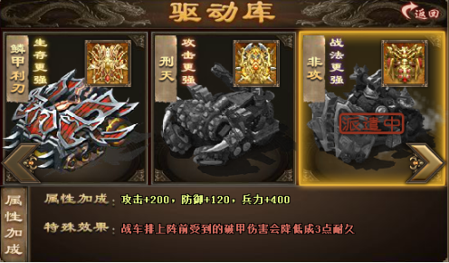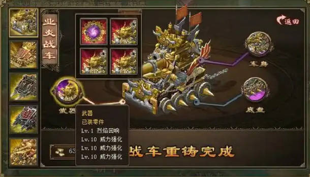 战车打造成功,并不意味着工作的结束,相反,这只是开始。你需要对造好的战车进行持续的培养和强化。其中非常重要的一环就是改造。战车改造可以显著提升其战斗属性,比如增强攻城时的突破能力,或者减少己方士兵的伤亡。 改造通常也需要消耗陨铁等资源。改造功能一般在你的战车达到某种条件(例如满三车)后才会开启,里面可能会有不同的改造路线和选择,比如逐步改造或快速改造等,你可以根据自己的资源情况来决定强化策略。 通过改造,你的战车能从一件普通的攻城器械,蜕变成更具个性和威力的战场利器。
