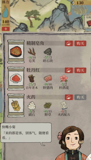 颜料的获取与游戏内的驿站探险功能紧密相关,主要地图包括秦淮河畔、应天城郊和丽娘府宅。在秦淮河畔的画室或造纸厂,你可以购买或兑换到牡丹红、杏仁黄;在应天城郊的商店可以兑换飞泉绿;而在丽娘府宅,你能找到兑换晴山蓝、青花蓝和松烟墨的店铺或那个背着扁担的小贩。这意味着,定向地前往对应地图,收集齐商店要求的材料进行兑换,是最基础的获取颜料方式。杏仁黄需要在探险中找到杂货店进行兑换,所需材料可能包括金花笺、皂荚和铁矿石;飞泉绿则可以通过完成帮助裁缝店老板娘追回盗贼或驱赶野猪的任务来获得。