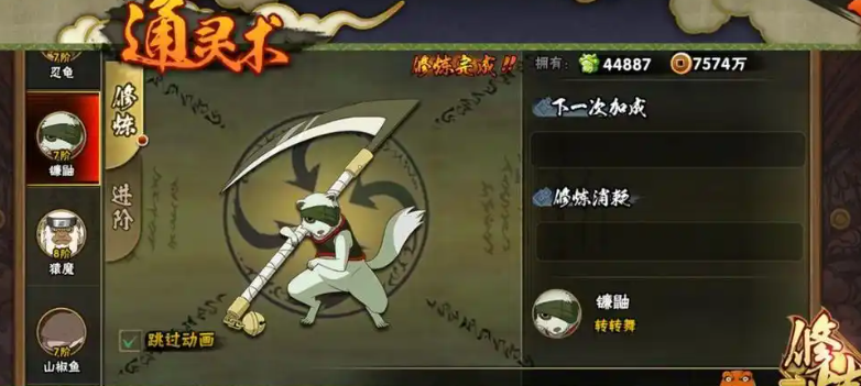 在装备通灵兽之前,玩家需要确保已经学习了相应的通灵术,这是召唤通灵兽的关键前提。通灵术需要通过消耗声望和铜币进行学习来提升层数,每一层通灵术都对应着可以解锁的特定通灵兽,例如第一层通灵术可以解锁忍犬。通灵术的层数越高,所能解锁的通灵兽就越强力,同时也能直接为角色带来攻击、防御、生命三项属性的永久性加成。积累资源提升通灵术等级是装备更强力通灵兽的基础。