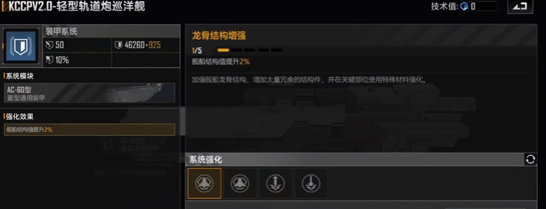 优先强化主武器的冷却时间和伤害,这样可以缩短输出间隔,提升爆发能力。装甲系统建议点结构值和物理抗性,毕竟这艘船的生存能力一般,需要适当弥补短板。动力系统可以根据编队需求调整,如果编入高速舰队,可以适当提升巡航速度。