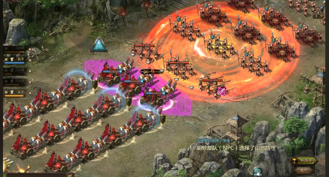 步兵需优先部署于前排吸收伤害,为后排创造输出环境;弓箭手应置于安全位置持续提供火力支援;骑兵的机动性使其适合绕后或拦截敌方关键单位;战车的厚重装甲可强行打开突破口;巨石炮则需把握时机攻击高价值目标。战斗中需根据敌方阵型动态调整兵种站位,例如遭遇大量远程单位时,可派遣骑兵快速切入打乱对方阵脚,同时用巨石炮压制敌方的核心防御工事。