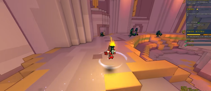 平时主要靠左键普攻输出,被动触发时才用右键蓄力炮。面对近战BOSS时可以跳起来在空中持续输出,快落地时用爆炸跳跃重置高度。遇到远程BOSS就找掩体或自己搭方块挡弹道,侧面露头打。这套打法能安全地保持距离最大化输出。记得多用大招,配合攻速药水能在短时间内爆发极高伤害。