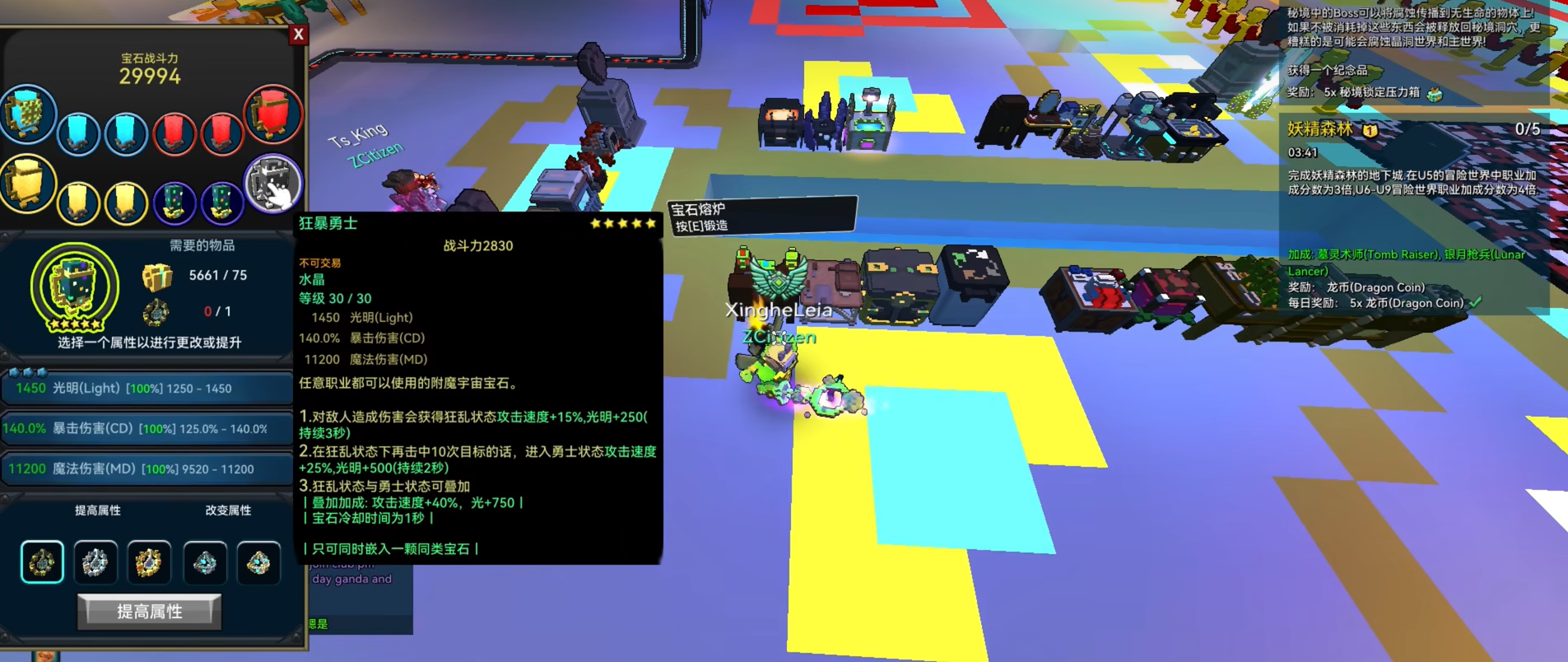 前期优先堆暴击率到70%之后重点提升暴击伤害和魔法伤害。职业宝石一旦获得立刻装备,无论什么属性都能大幅提升战斗力。后期宝石可以选择暴击伤害、魔法伤害和生命值的组合,保证输出的同时提高容错率。龙坐骑推荐先做星光龙,永久增加魔法伤害和掉宝率,宠物选择时空术士或星光龙宝宝,都能提供魔法伤害加成。