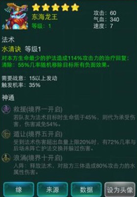 例如小白龙与东海龙王同时上阵可激活父子缘分,银角大王与金角大王的兄弟缘分能提升生存与输出。需注意缘分装备的获取途径,如精英关卡刷取女王和李世民的缘装可快速成型。天赋神通等级需优先提升,尤其是金角大王的元形、罗成的背水等核心技能,精修法术虽不增强效果但能附加特殊状态。