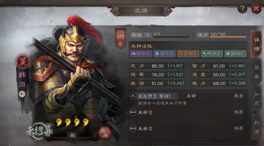蒋钦的兵书选择需贴合阵容定位,输出型阵容优先虚实系列,点出大谋不谋与将威,提升主动战法暴击概率与伤害上限;辅助型配置则选九变系列,援其必攻与励军可增强队伍生存与治疗效果。面对高爆发队伍时,可灵活切换军形系守势提升防御,铜币紧张时优先解锁核心兵书,后续再补全分支。玩法中需注意蒋钦作为紫将基础属性有限,避免正面硬刚高统率肉队,优先针对骑弓类阵容发挥克制优势,通过兵种适性与战法联动弥补属性短板。