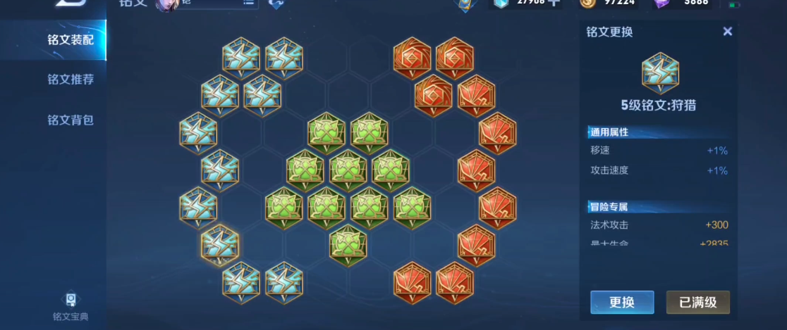 双形态弈星的铭文搭配需与出装契合,通用选择10梦魇、10心眼、10狩猎,梦魇与心眼提供高额法术穿透,强化前期清线与消耗能力,狩猎提升移速与攻速,让强化普攻更流畅,支援转线更灵活。面对多消耗或刺客阵容时,可将5狩猎换为5贪婪,增加法术吸血,提升续航与换血能力,减少回城次数,保持线上压制力。技能加点主升一技能副升二技能,有大点大,一技能是核心输出与探视野手段,可提前布置棋子,配合二技能连线打出爆发,二技能的聚敌与控制能提高大招命中率,双形态下棋子数量积累更快,可灵活触发强化普攻与移速加成。