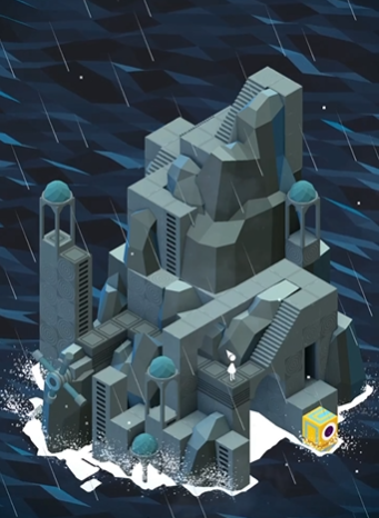 进入最终城堡场景,点击红色按钮开启直通门洞的道路,艾达离开按钮时,乌鸦会快速靠近左侧机关试图关闭通道,此时要再次下拉三圆点缀体,升起障碍物阻断乌鸦去路。艾达从高处门洞出现后,直接进入相邻门洞,与蓝色几何精灵完成互动,进入黑色场景即可顺利通关。