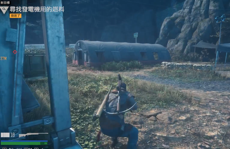 发电机的具体位置在检查哨区域中部的一块显眼的巨石旁边。这个位置相对开阔,但发电机有时可能被周围的废弃设备或杂物部分遮挡视线,建议玩家在巨石附近仔细搜寻,或尝试绕着石头走一圈,注意地面上是否有电缆连接,这有助于快速定位。如果从平面视角难以发现,可以尝试爬到区域内的较高处进行俯视,发电机的金属外壳在光线下会比较显眼。而启动发电机所需的汽油桶,则藏在检查哨区域右侧的一顶绿色军用帐篷里。进入帐篷后,在左侧或角落的杂物堆中便能找到油桶。建议玩家在寻找发电机前,优先进入帐篷获取汽油桶,这样可以避免后续重复跑动,提升效率。