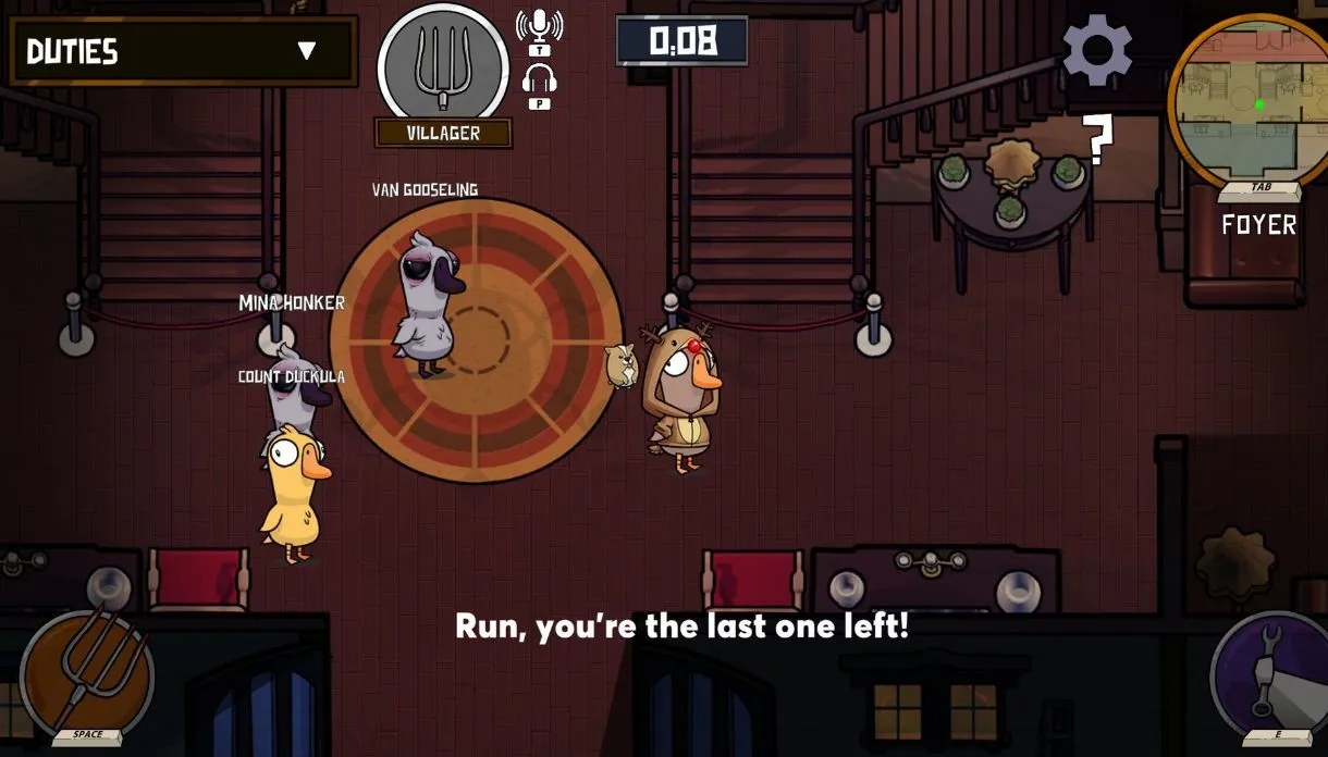 实战中使用瘟疫技能需精准把控时机与目标,优先选择抱团行动的玩家组合,比如结伴做任务的鹅阵营、协同行动的鸭阵营,或是警长与肉汁这类常绑定行动的职业,能大幅提升双杀成功率。避开落单且长期无交集的玩家,防止仅触发单杀浪费30秒冷却,同时减少暴露风险。释放技能后要迅速撤离现场,混入人群伪装成普通玩家,避免尸体被发现后成为怀疑对象,会议发言时保持中立态度,不主动带节奏也不强烈保人,通过模糊言论混淆其他玩家判断,加剧阵营内部分裂。